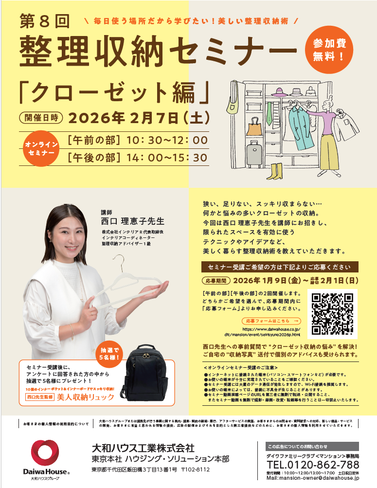 【オンライン】2026/2/7(土)大和ハウス工業様主催「クローゼット編」